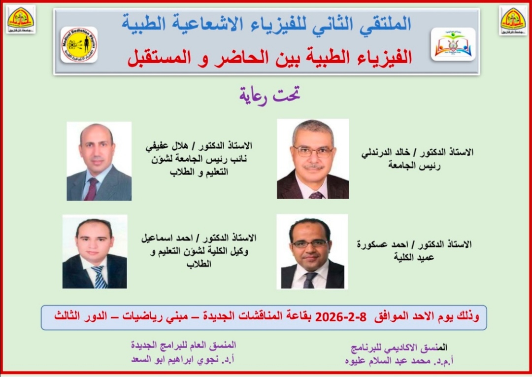 تعلن كلية العلوم جامعة الزقازيق عن موافقة المجلس الاعلى للجامعات بإطلاق برنامج الفيزياء الإشعاعية الطبية بالكلية إعتبارا من العام الجامعي 2020-2021. والذي يمنح درجة البكالوريوس تخصص الفيزياء الإشعاعية والطبية. تمكنهم من العمل بالمجالات الآتية: